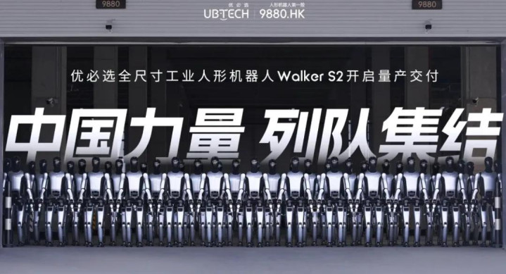 彼时,优必选还在官方社交平台发布了一则交付视频,视频中数百台Walker S2 工业人形机器人组成方阵,整齐划一地完成换电、列队行进等动作,迅速引发行业震动!